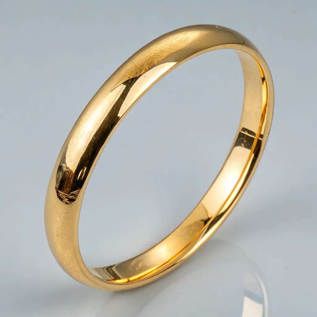 This luxurious gold bangle bracelet is crafted from 14K gold with a polished finish, featuring a bold yet refined design. Its smooth, rounded shape makes it comfortable to wear, while its elegant appearance adds a touch of sophistication to any ensemble. The bracelet is perfect for stacking or wearing alone as a statement piece. Made with premium materials, it embodies the essence of modern luxury.