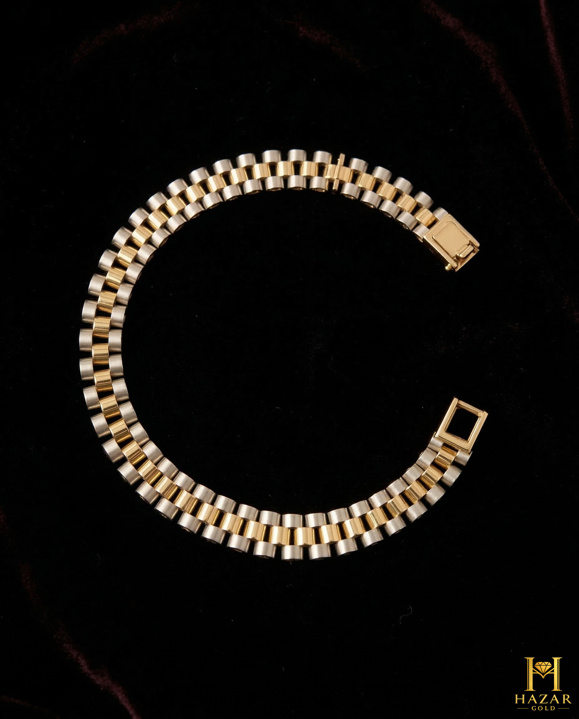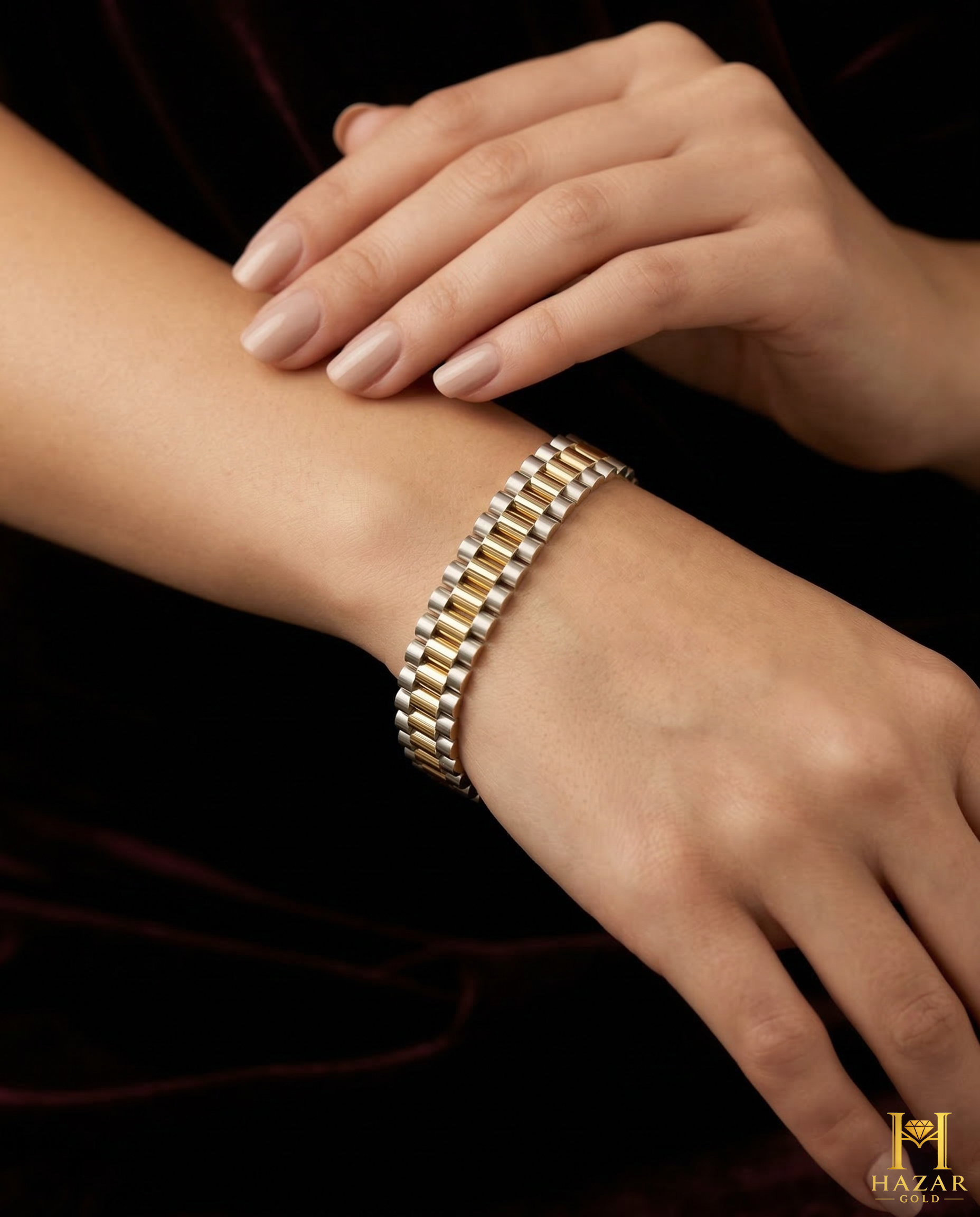 Zamansız bir zarafetin modern mühendislikle buluştuğu bu özel tasarım, iki tonlu altın işçiliğiyle her anınıza prestij katar. Ustalıkla işlenmiş baklaları ve kusursuz dokusuyla, bileğinizde sadece bir aksesuar değil, nesiller boyu aktarılacak bir miras taşıyacaksınız. Kendini özel hissetmek isteyen kadınlar için zarafetin en somut hali.