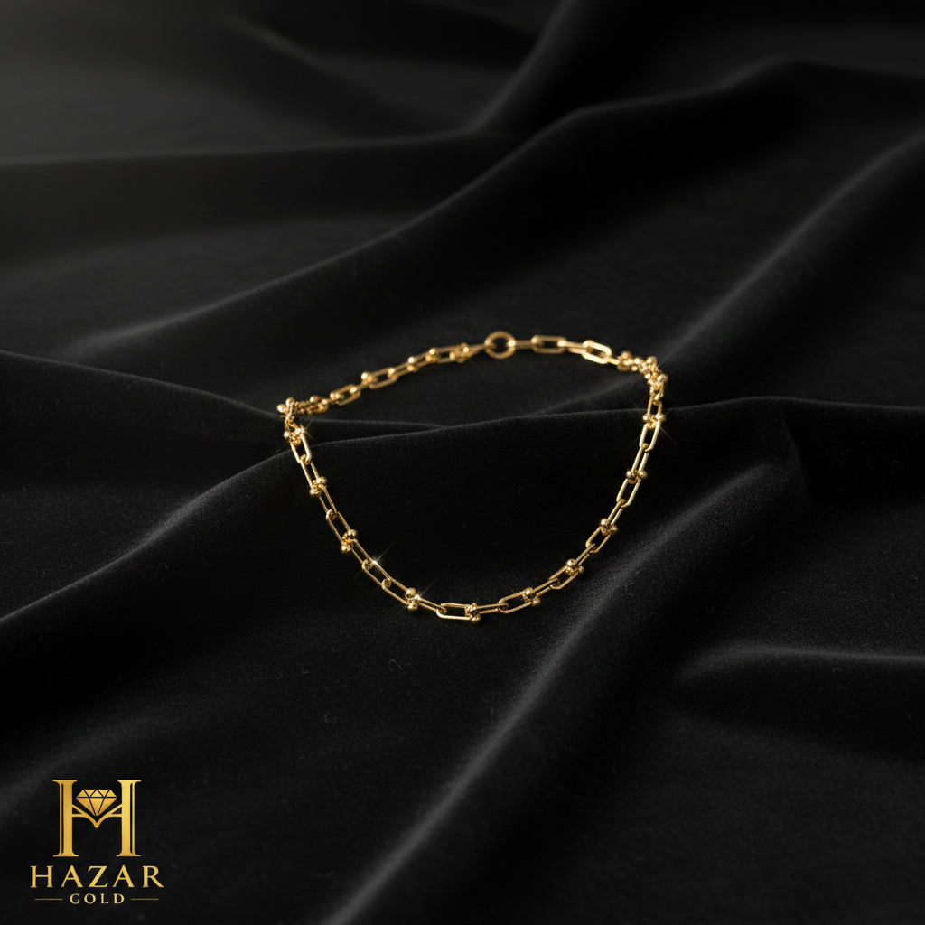 Hazar Gold’un modern kadının ruhunu yansıtan bu özel tasarımı, endüstriyel şıklığı lüks detaylarla birleştiriyor. 18.87 gramlık dengeli ağırlığı، gün boyu konforlu bir kullanım sunarken، her ortamda dikkatleri üzerinize çekecek bir ışıltıya sahiptir.